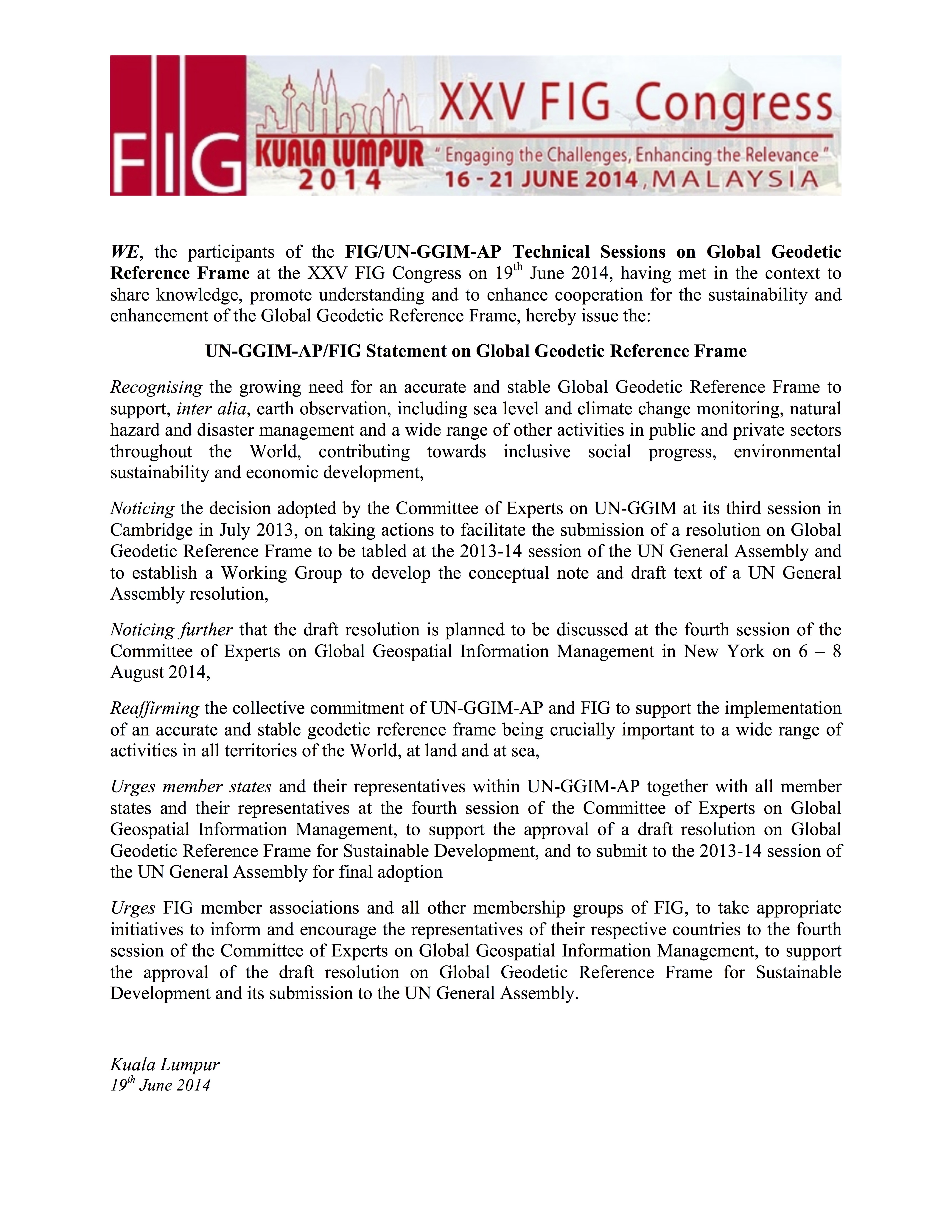 International Federation of Surveyors (FIG) and the