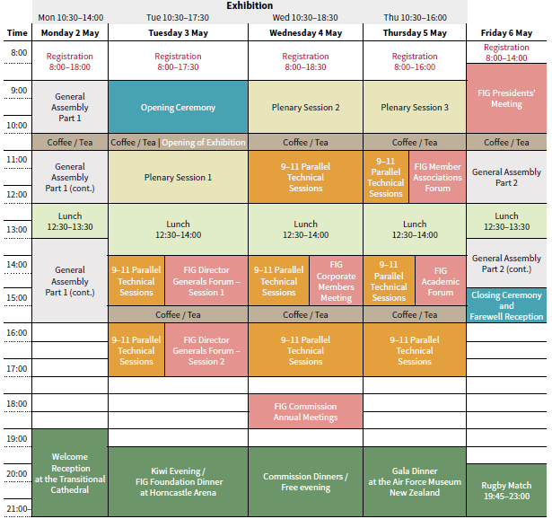 Plenary sessions Opening Ceremony Technical Programme Forum sessions Technical tours FIG Commission Meetings |
