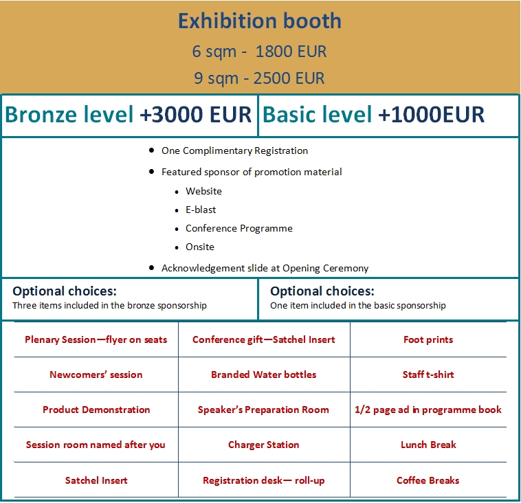 Coffee Break Sponsor (morning and afternoon)   3 1,200 EUR