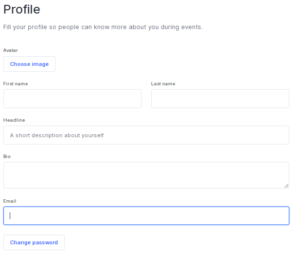 After you have registered for the FIG e-Working Week, you are able to fill in your profile, so other participants can connect with you. The Profile tab gives you access to your profile information. Here, you can update your avatar, name, user email, headline, bio, and social profiles.