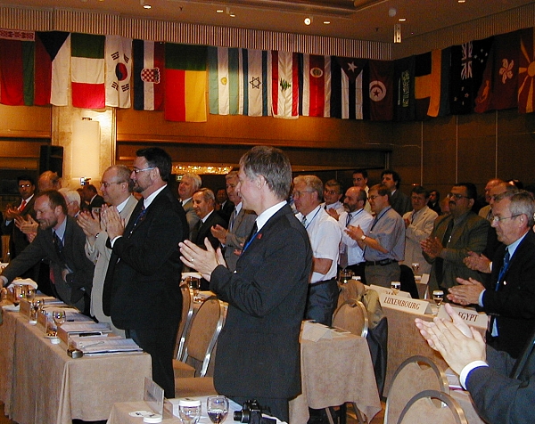Three rounds were needed in the Vice President elections before the result was clear. Here the French delegates are giving their votes Rafic Khouri, OGE and Michel Kasser, AFT.