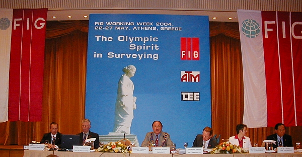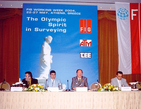 FIG Working Week 2004 was organised in  Athens 22-27 May 2004. The Working Week offered the participants an excellent opportunity to feel the Olympic Spirit in Surveying and also to get familiar with the preparations of the Olympic Games in August this year. Totally more than 400 delegates from 67 countries attended. Together with the more than 250 participants that attended the 1st HARSE Conference at the Intercontinental Athenaeum in Athens, the Working Week was among the biggest ever outside the four-yearly congresses.