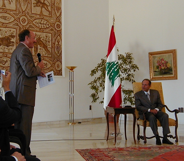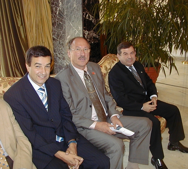 Aziz Hilali, Holger Magel and Sarkis Fadous waiting for Gen. Emile Lahoud, President of the Republic of Lebanon.