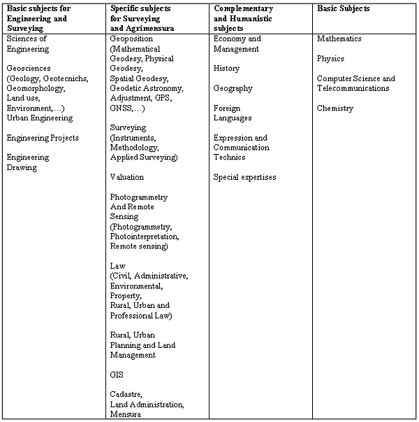• Specific subjects for Surveying and Agrimensura