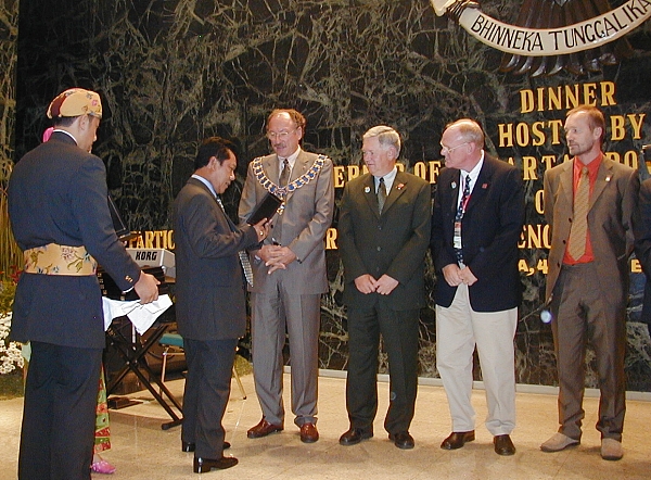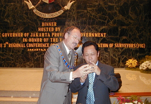 The FIG Conference in Indonesia was highly respected by the authorities in Jakarta. The Governor gives gifts to some foreign visitors.