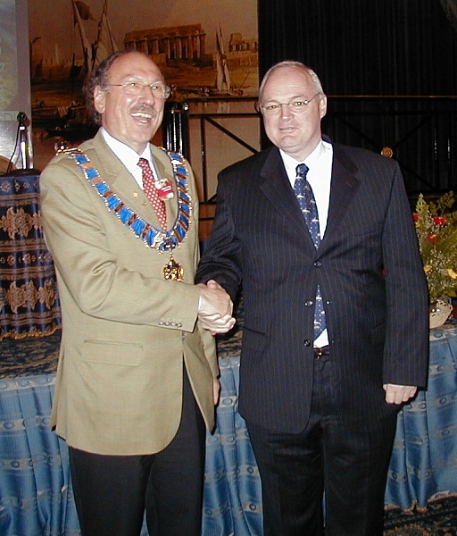 President Magel congratulating Jim Curnow from ISA, Australia.