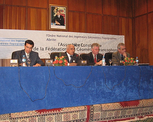 During the conference there was also the first meeting of the Federation des Géomètres Francophones (FGF), which was founded on 24 November in Rabat. At the meeting a Council is established with President Alain Gaudet (OGE, France) and Vice President Aziz Hilali (ONIGT, Morocco). In the FGF statutes there is a reference to the cooperation with FIG. At the meeting there were 17 founding members, among them some that are not members of FIG at the moment (e.g. Senegal). The meeting pubslished also the Rabat Declaration.