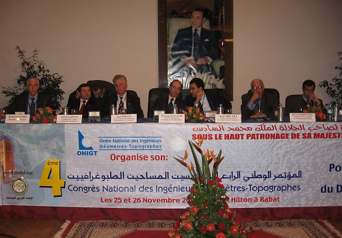 The Ordre National des Ingénieurs Géomètres-Topographes, ONIGT organised its 4th National Congress in Rabat, Morocco, 24-26 November 2005. The conference was attended by about 400 participants out of this 100 international. The main topic of the conference was the new cadastre for Morocco. At the opening ceremony Dr. Ralf Schroth, Vice President of FIG made his address on behalf of the federation.