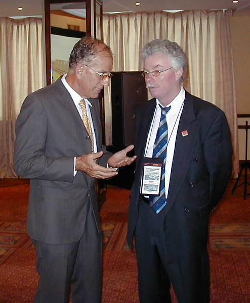 Adam Greenland, Chair of Commission 4 having discussions with Hugo Gorziglia, Director of IHB.
