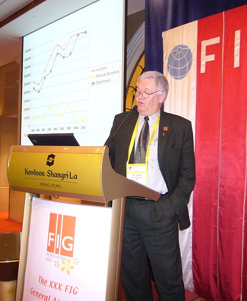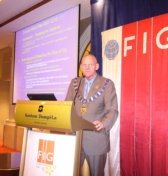 President Enemark making his presentation on the FIG Work Plan