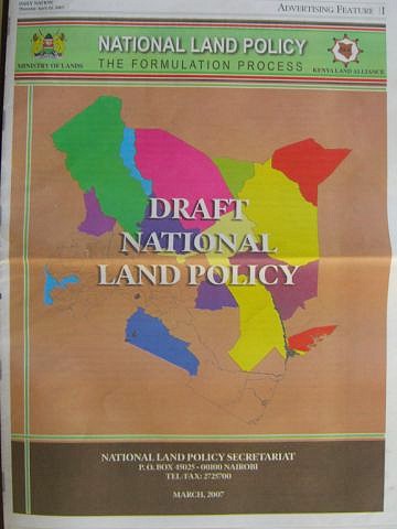 Kenya Land Policy published in the local newspaper 19th April 2007.