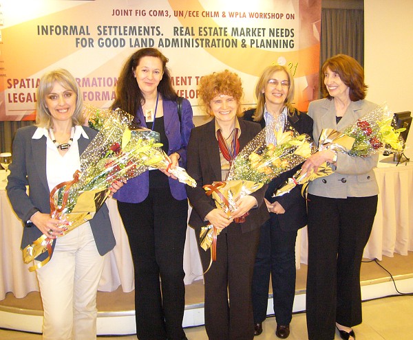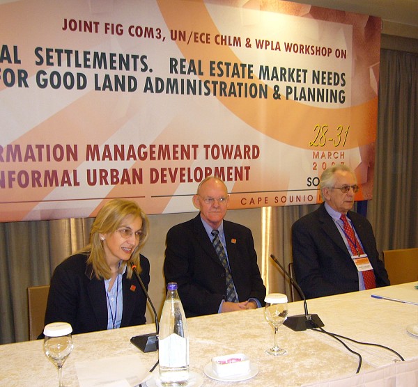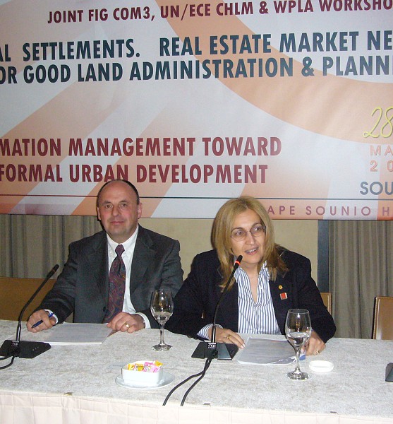 Makis Apostolatos, FIG Commission 3 Vice Chair of Administration, Doris Andoni, UN/ECE CHLM Chair, and