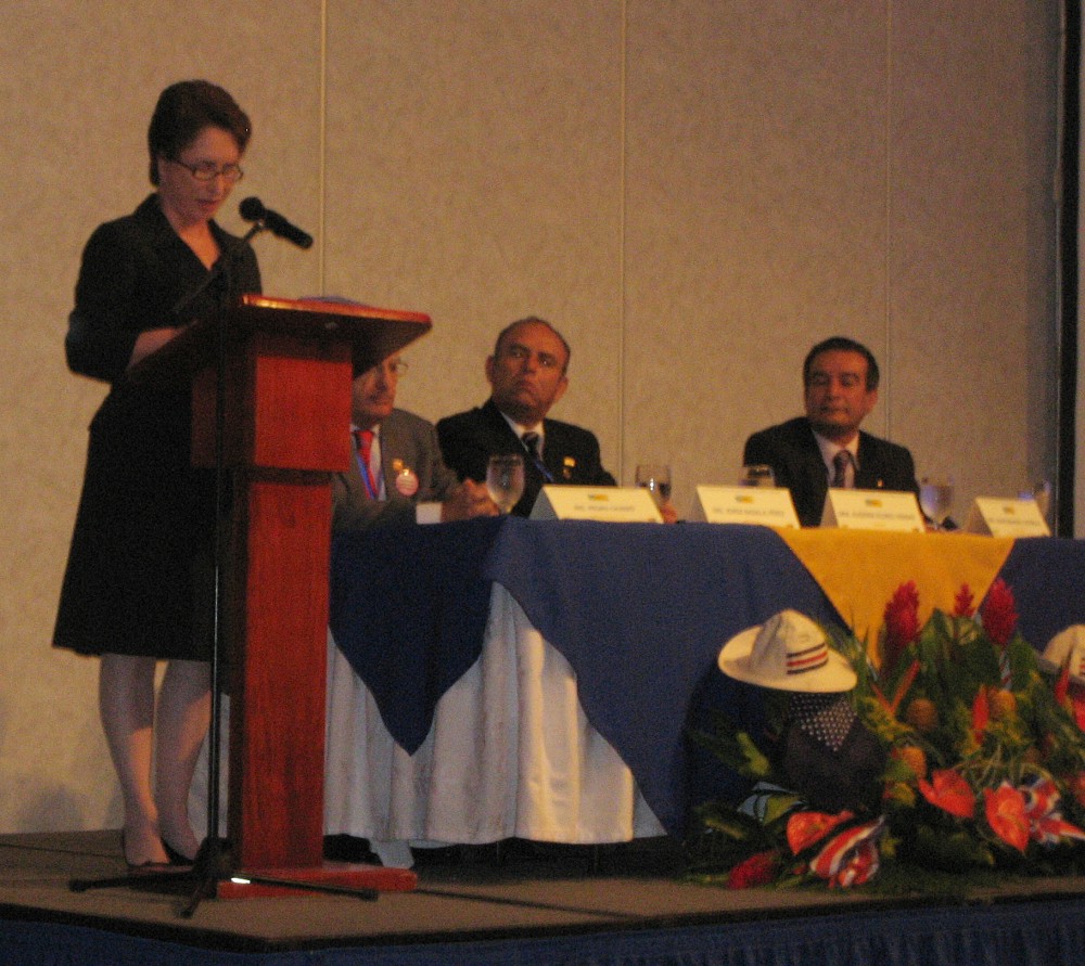 Ms. Eugenia Flores Vindas, Minister of Science and Technology, Costa Rica making her welcome address at the opening ceremony. Other speakers were Prof. Pedro Cavero, Eng. Jorge Badilla Pérez and Eng. Juan Manuel Castro Alfaro