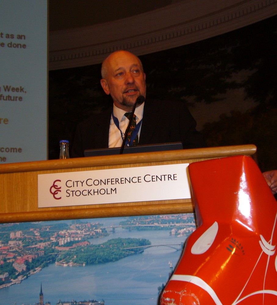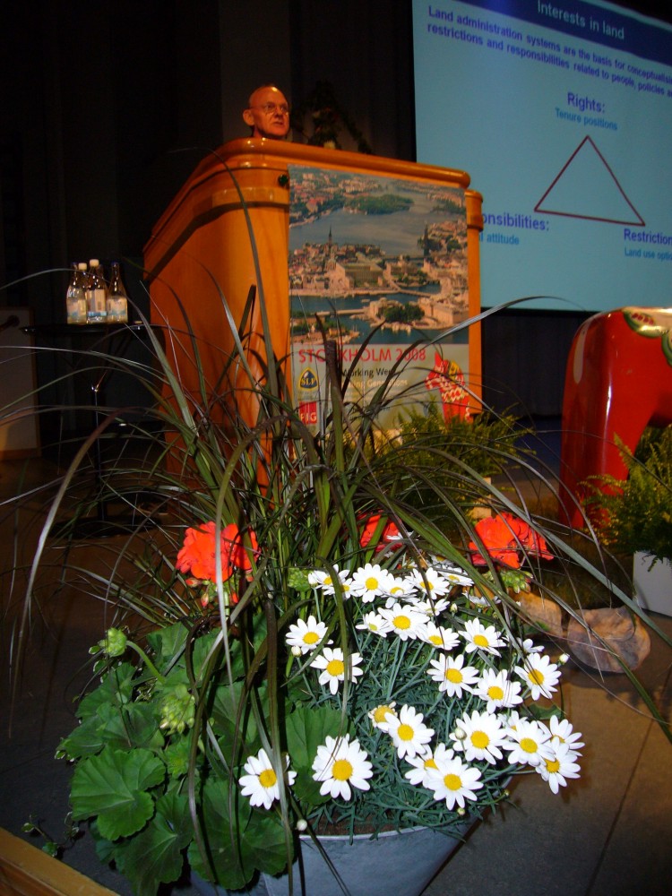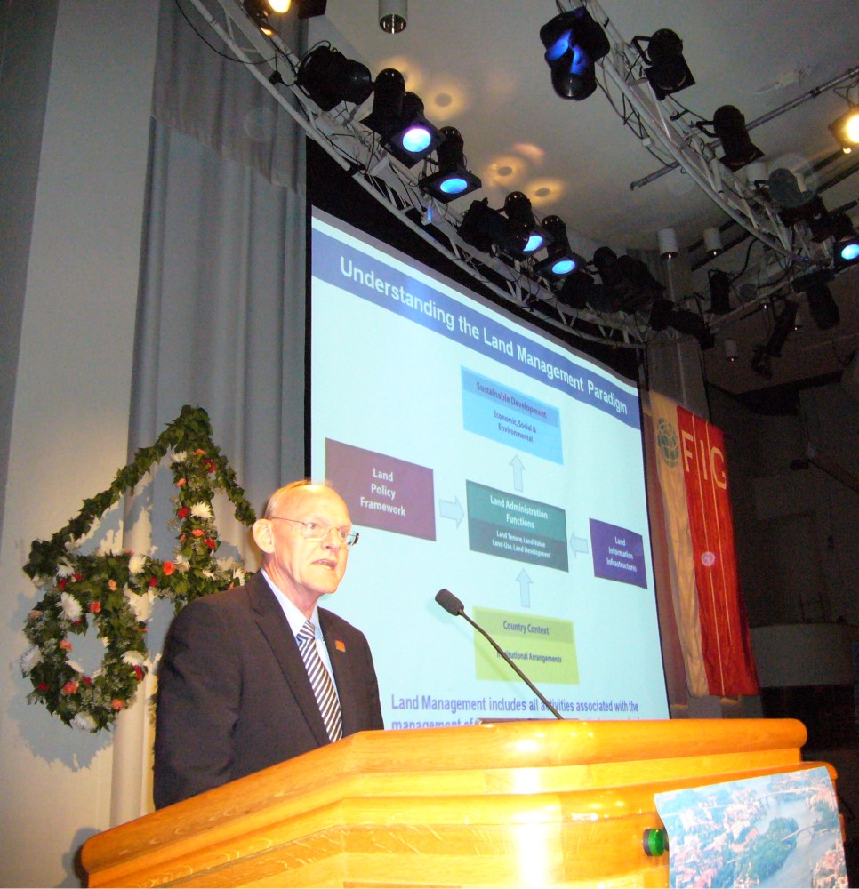 President Stig Enemark making his keynote presentation at the first plenary session in Stockholm.