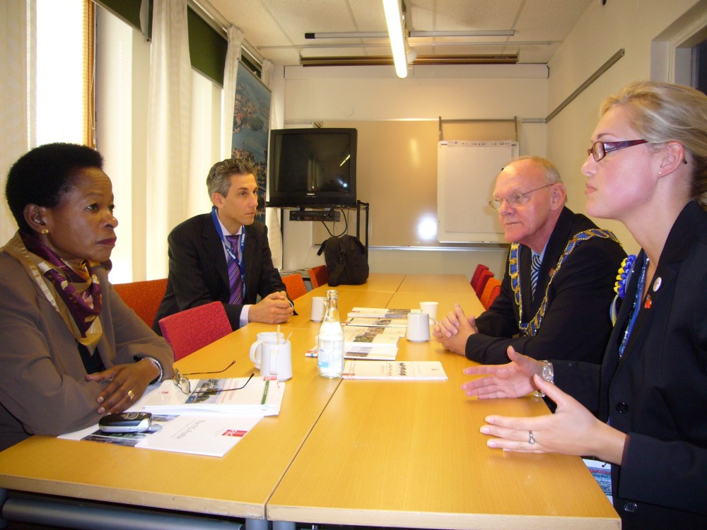 Anna Tibaijuka and Szilard Fricska from UN-HABITAT in briefing with Stig Enemark and Cecilia Lindén.