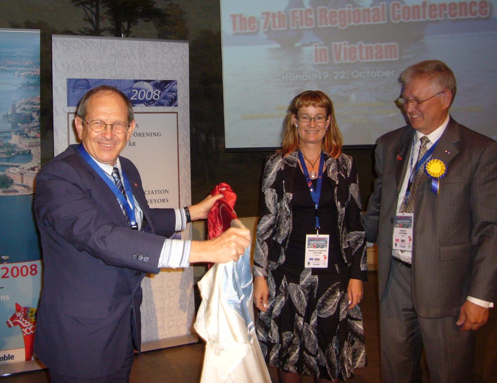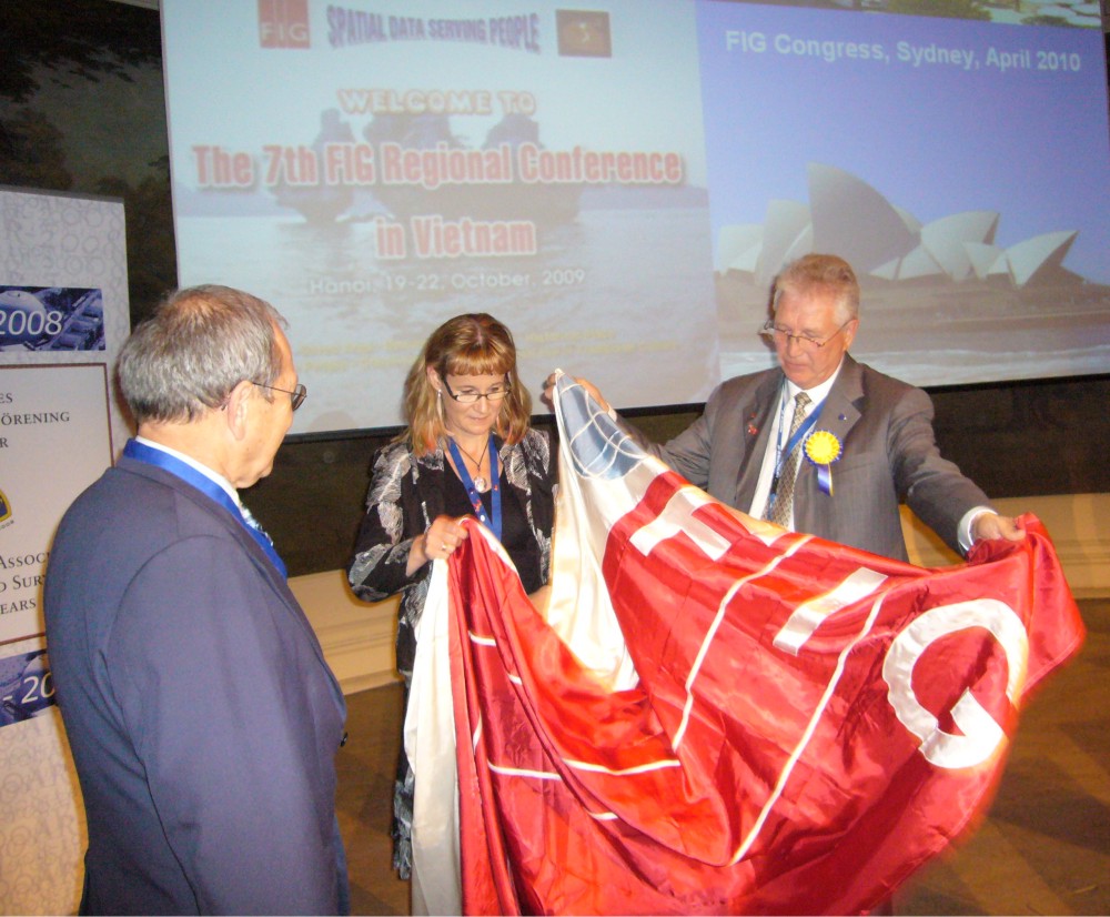 Svante Astermo and Maria Ulfvarsson Östlund gave the FIG banner to Haim Srebro, Conference Director of FIG2009.