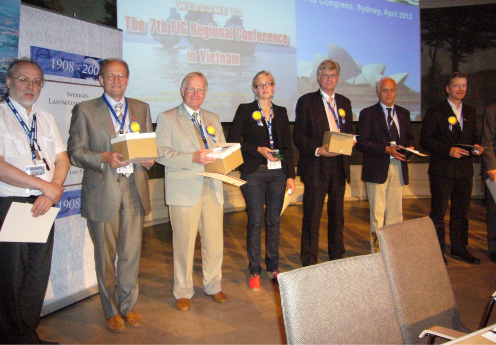 President Stig Enemark together with Commission 5 officers Volker Schwieger (on the left), Mikael Lilje, Rudolf Staiger, Rob Sarib and David Martin.