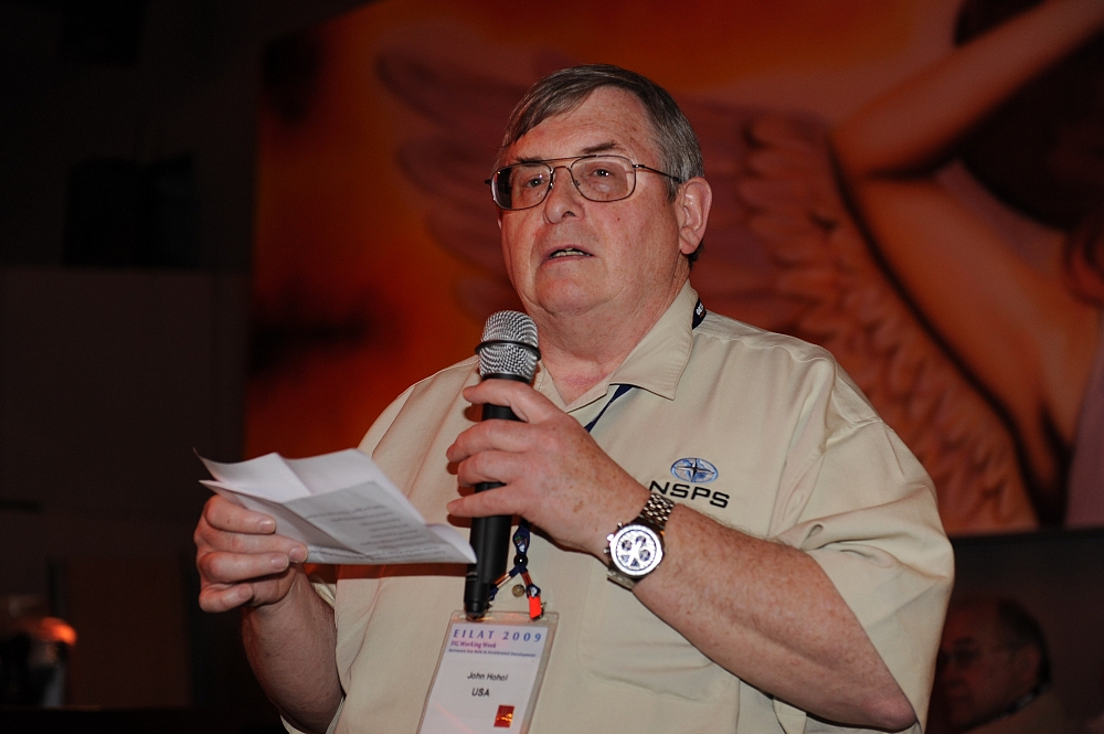 John Hohol, President of FIG Foundation introducing the Foundation and receivers of the scholarships for Eilat.