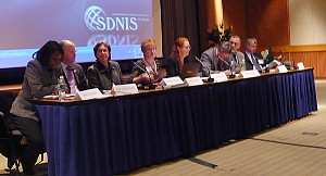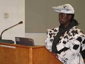 Panel at the Closing Session: Joan Kagwanja, Economic Affairs Officer, UN-ECA, chair of the closing session (left), Paul van der Molen, the Netherlands, Clarissa Augustinus, UN-HABITAT, Cheryl Morden, IFAD, Jolyne Sanjak, MCC, Helge Onsrud, Norway and Alain Durand-Lasserve, France and Paul Munro-Faure, FAO.