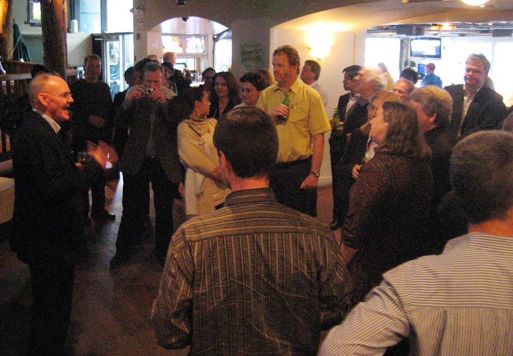 Klaus Deininger introduces the key people at the opening reception: Stig Enemark,  FIG (left), Mark Crackler, WG ARD and  Inga Björk-Klevby, UN-HABITAT.