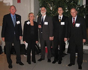 FIG President Stig Enemark, Inga Björk-Klevby (Deputy Executive Director, UN-HABITAT, Mark Crackler, Director, WB ARD, Klaus Deininger, WB and Paul van der Molen, FIG.