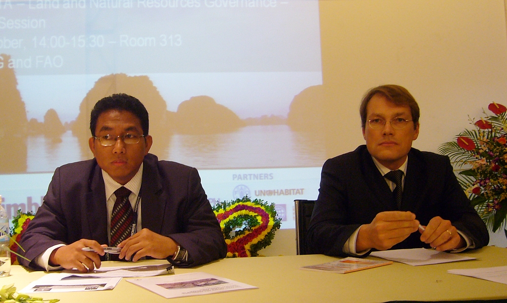 Keith Bell, World Bank, Paul Munro-Faure, FAO and Ton Gia Huyen from Vietnam were the keynote speakers in the first plenary session that addressed the tenure issues in Vietnam and South East Asia.