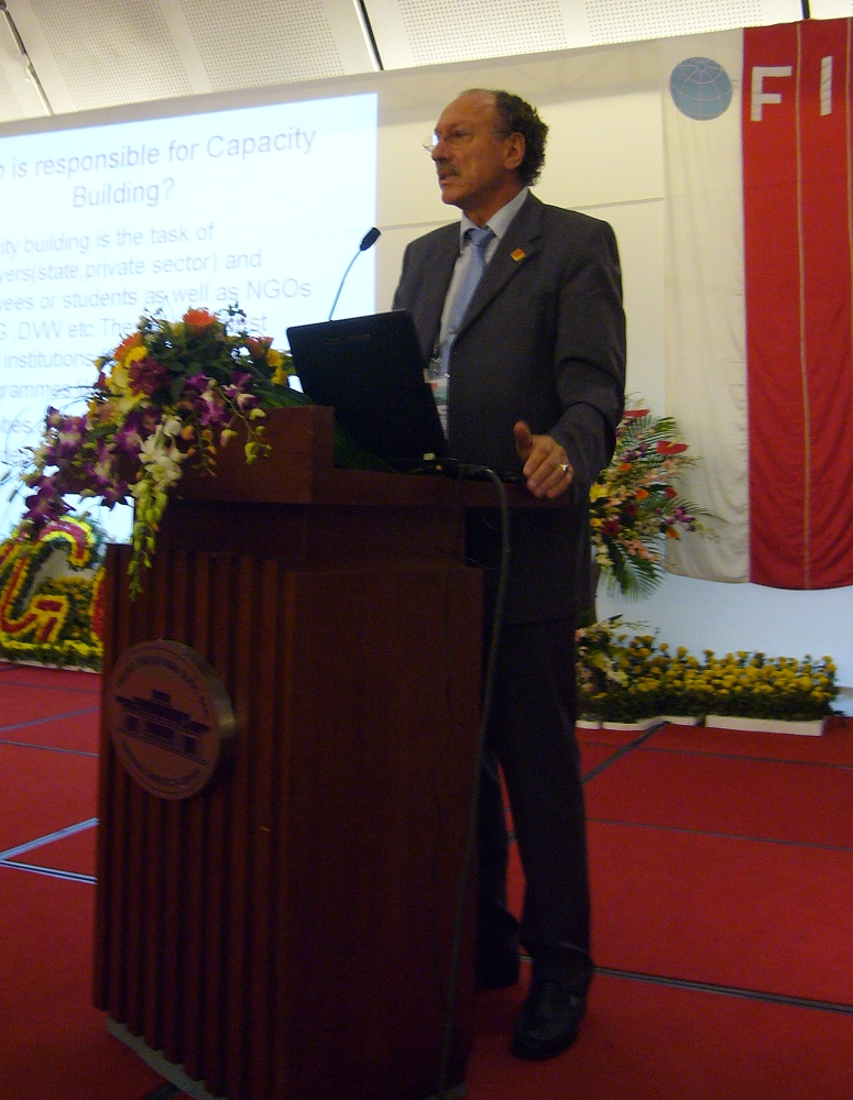 FIG Honorary President Holger Magel from Germany addressing issues on capacity development in the third plenary session.