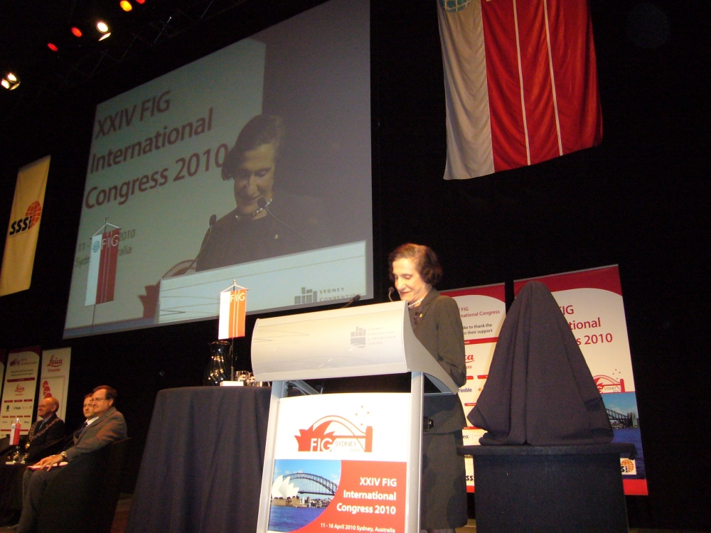 Dr. Marie Bashir making his welcome address at the FIG XXIV