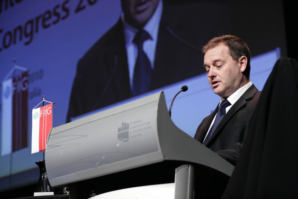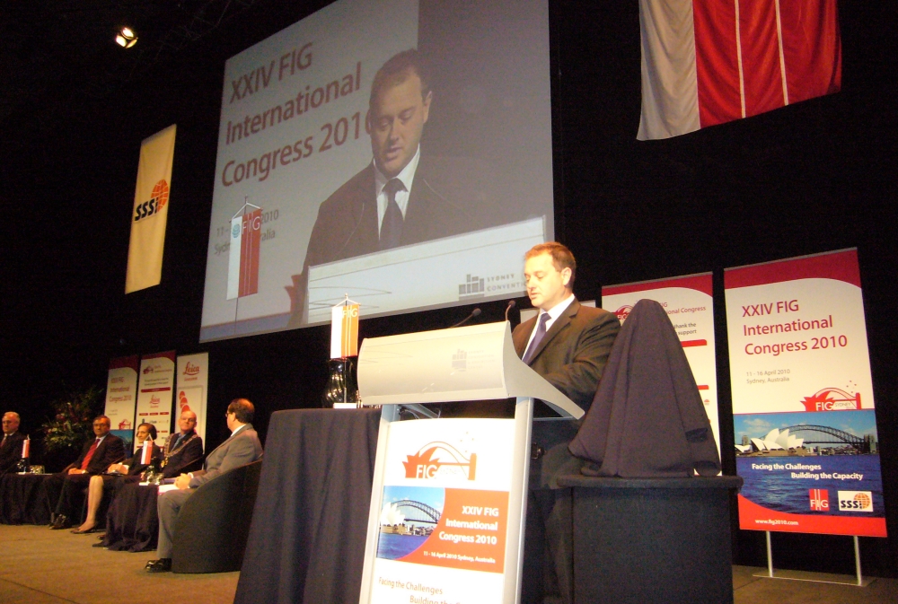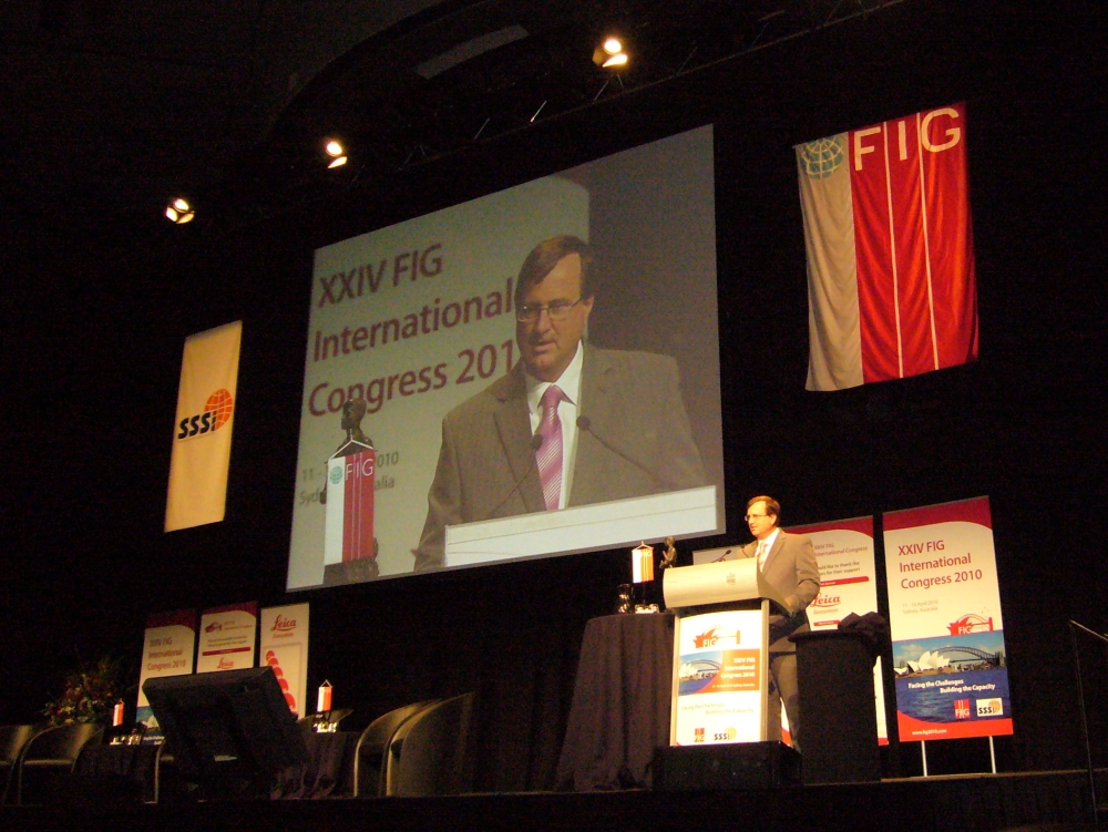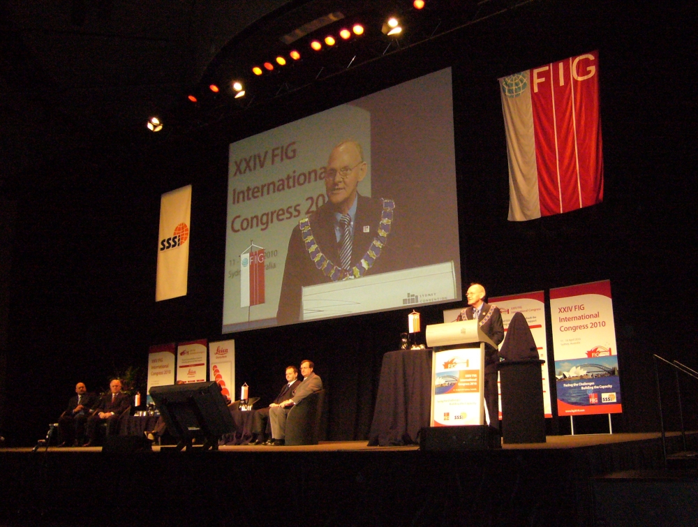 FIG President Stig Enemark making his opening address at the