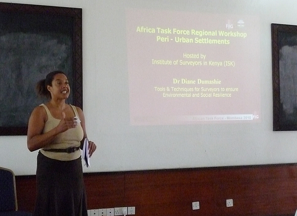 Diane Dumashie, Chair of FIG Africa Task force making her