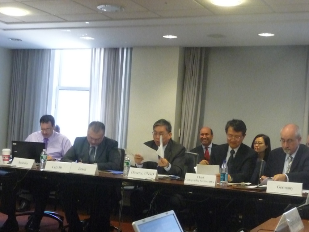 The meeting was organized by United Nations Statistics Division (UNSD) of the Department for Economic and Social Affairs (DESA) in cooperation with the Cartographic Section of the Department of Field Services (DFS). Experts from 16 countries (Australia, Brazil, Burkina Faso, Canada, Chile, Cuba, Egypt, Finland, Germany, Guatemala, India, Japan, Mexico, Republic of Korea, UK, USA) and 15 Regional and International Organizations (EuroGeographics, EUROGI, FIG, ICA, IHO, IGU, ISCGM, ISPRS, GSDI, GEO/GEOSS, Joint-Board of GIS/ESRI, ISO/TC 211, OGC, UNGEGN, PSMA) attended the Meeting that was chaired by Mr. Paul Cheung, Director of UNSD and co-chaired by Mr. Luiz Paulo Fortes (Brazil) and Mr. Hiroshi Murakami (Japan).