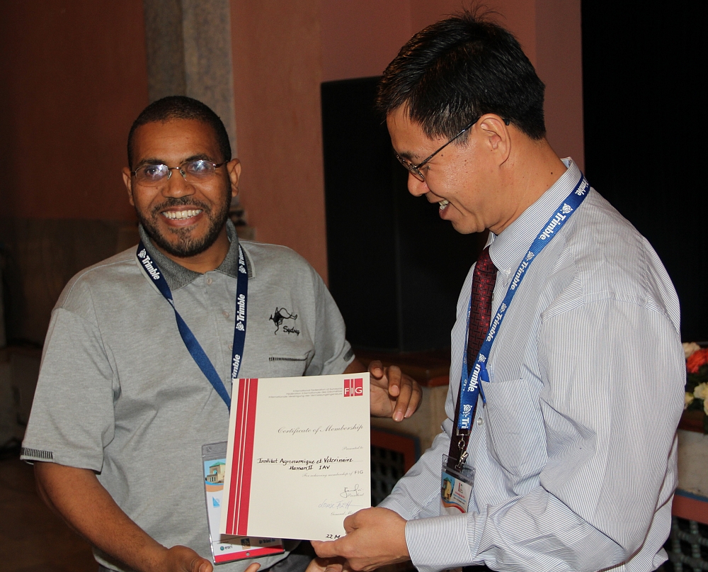 General Manager Ashraf Omar from Concord Surveying Works receiving the membership certificate as a corporate member.