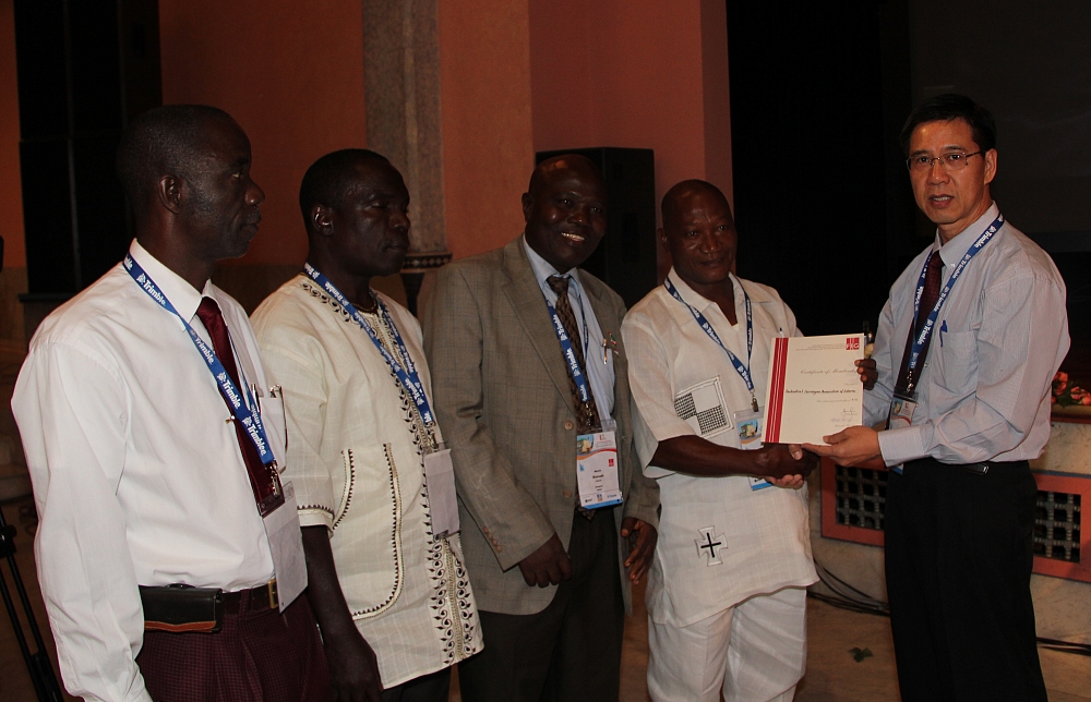 President J. Josephus Burgess from CASUAL, Liberia receiving the membership certificate from President Teo.
