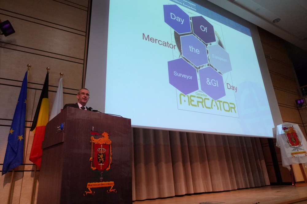 The event was held at the Conference Centre of the Royal Military Academy in Brussels in the presence of the Honourable Minister of State and President of the Belgian Mapping Agency, Phillippe Busquin. In his opening address Jean-Yves Pirlot, President of CLGE outlined the rationale for the launch of the “Day of the European Surveyor and Geoinformation” as well as the Mercator Day Celebration.
