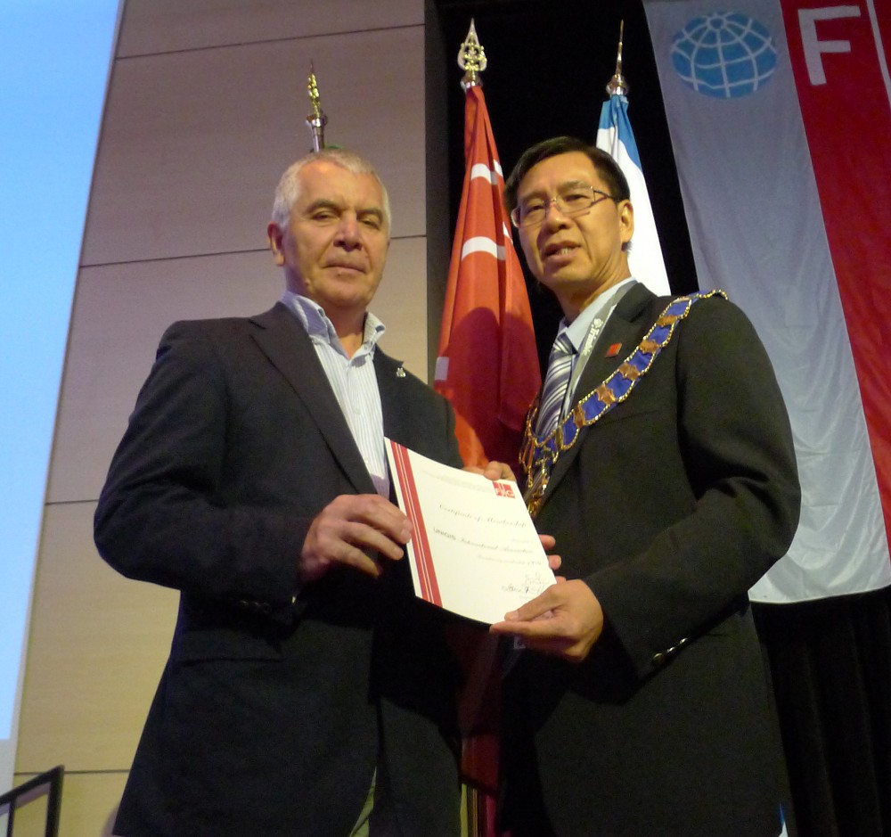 Matt Higgins was appointed as an Honorary Member of FIG - the badge and certificate were received on his behalf by Rob Sarib.