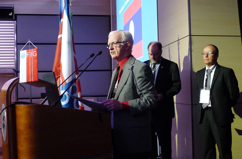 Honorary Presidents Robert W. Foster, Stig Enemark and Juha Talvitie following the appointment of new honorary member.