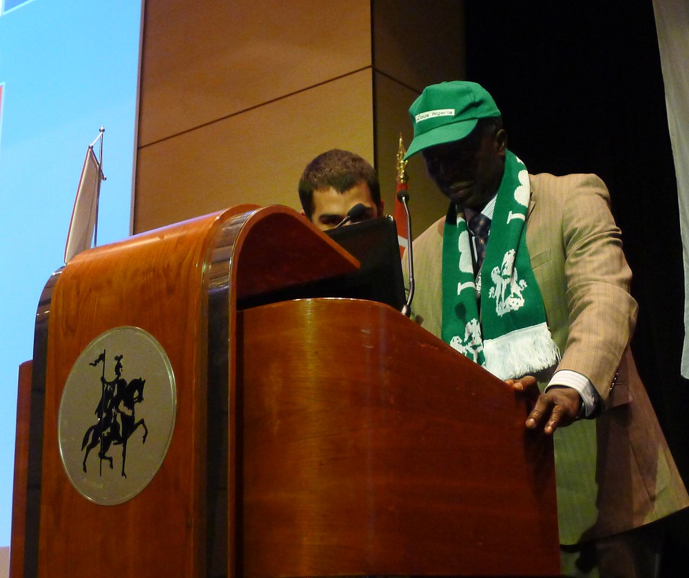 The Ambassador of Nigeria presenting the personal greeting from President of Nigeria Goodluck Jonathan to FIG.