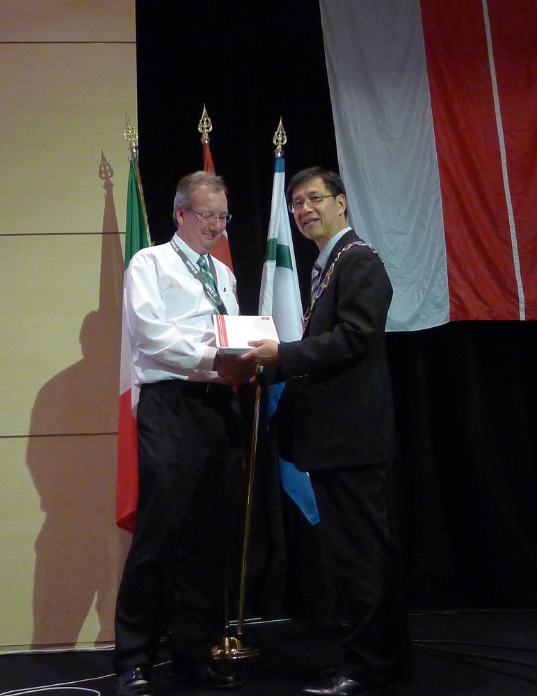 President Teo presenting a certificate of appreciation to the Working Week Platinum Sponsors: Keith Hofgartner, Trimble.