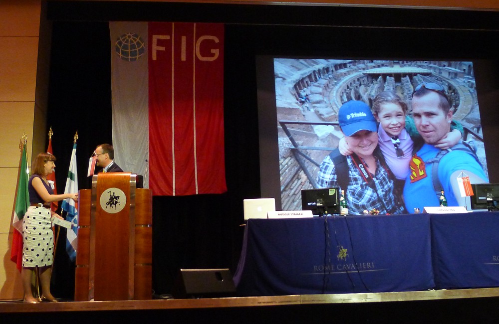 Keith Hofgartner, Trimble together with Kate Fairlie presented pictures from the young surveyors photo contest.