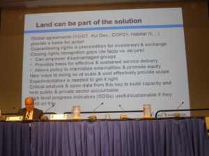 The conference continues to grow each and every year, becoming an important event to meet and deliberate with a diverse group of people and organisations all involved in Land.  In the spirit of the multi-diversity of the audience, the closing plenary involved concluding remarks from the World Bank; Ede Ijjasz-Vasquez and Kaushik Basu, and a leading NGO, Esther Mwaura Muiru from GROOTS Kenya.