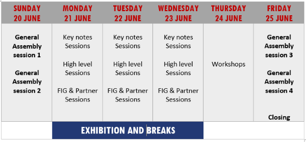 Just like the Working Week it will not be possible to meet in person for the General Assembly 2021. The General Assembly 2021 will therefore be held virtually. Please reserve the dates 20 and 25 June 2021. The General Assembly will as always be held in conjunction with the FIG e-Working Week that takes place 21-24 June 2021.