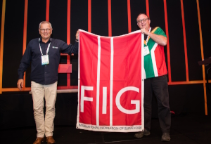 At the end of the Closing Ceremony Tony Wheeler handed over the FIG flag