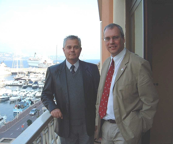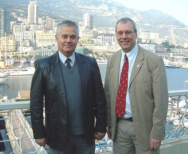 Captain Hugo Gorziglia (IHB), Director and Mr Adam Greenland, Chairman of FIG Commission 4 outside the headquaters of the International Hydrographic Organization.