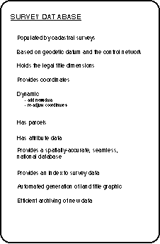 I have been concerned for some time that the window of opportunity was opening and that the opportunity could be missed if not grasped at the right time. One of the aims of DOSLI's (Department of Survey and Land Information) restructuring is to facilitate the management of the Survey System infrastructure and its development. The role of the survey industry is also important as the acceptance and success of any major developments will depend upon all participants in and users of the system being consulted and involved in the change program.