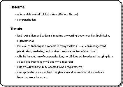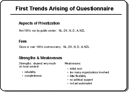 The questionnaire was sent out in February 1995 to all delegates of Commission 7 all around the world, and by the time of the seminar, answers from about 20 different countries had been sent back. In a first rough summary, some common trends can be detected: