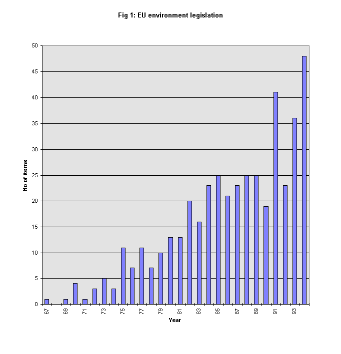 The Environment Action (framework) Programs do not have legislative force, but they do establish political commitment to general principles in relation to the environment. The increasing influence of the framework programs can be seen in the steady growth in EC environmental legislation over the years (Fig 1.)