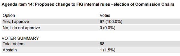 - PROPOSED CHANGE OF FIG INTERNAL RULES - ELECTION OF COMMISSION CHAIRS ELECTS