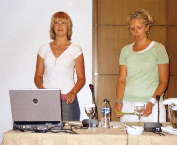 Jennie Nilsson (left) and Linnéa Lindqvist presenting in