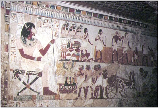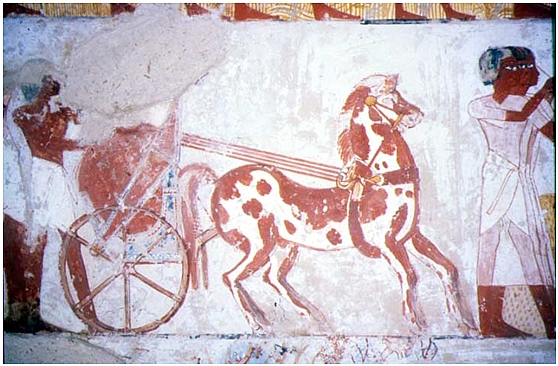 So it is clear that the Cadastre Scribe was not always a welcome sight to those farmers whose productivity was insufficient to meet the burden of their taxes, but it is evident from his horse and chariot (see photograph) that Menna was a figure of status and wealth through his service to the Temple bureaucracy.