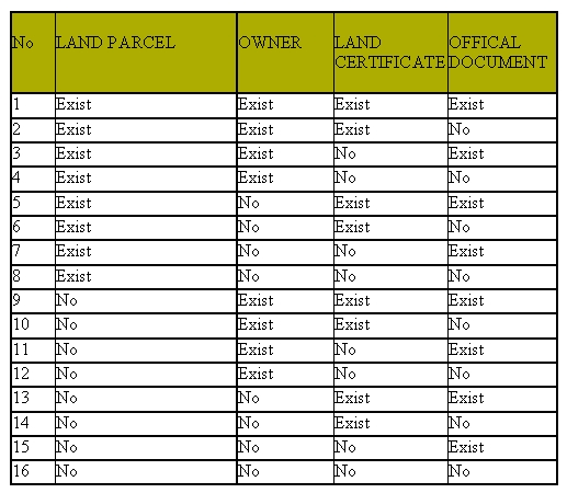 Table 1. Land-Owner-Document Condition (Haroen et al, 2005).